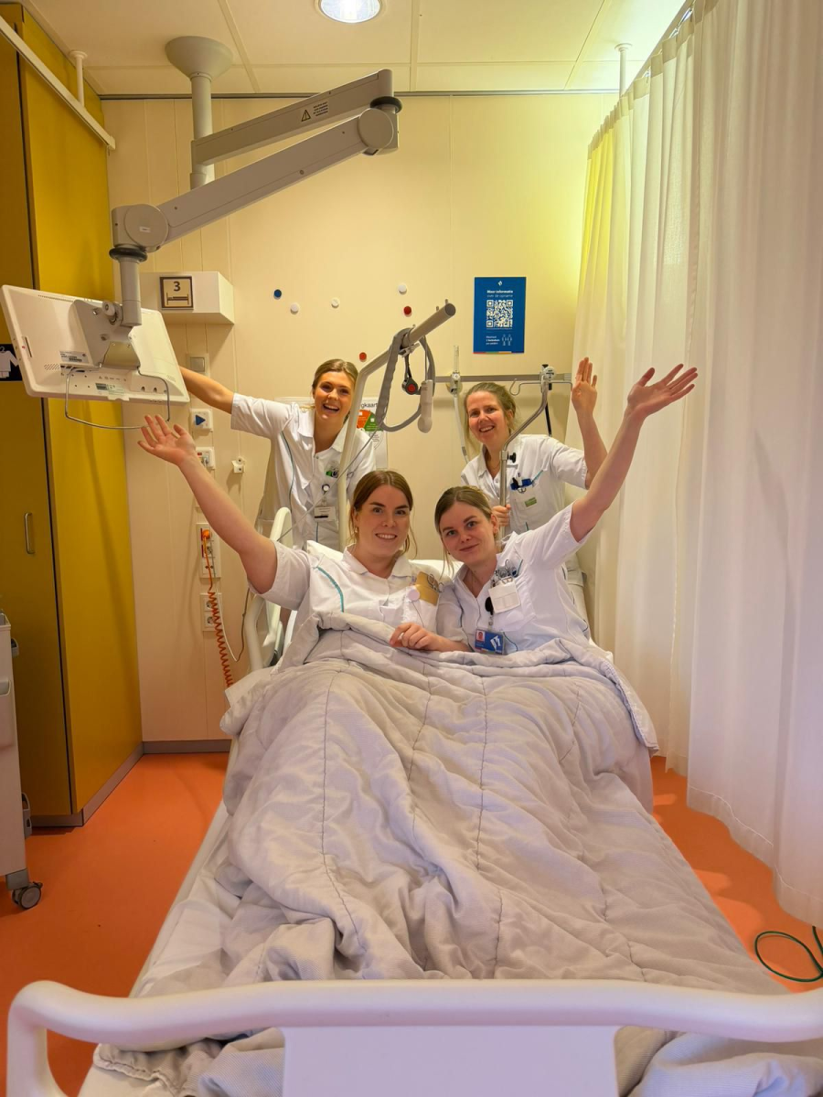 "Samen blijven slapen, om samen de zorg draaiende te houden. Dat is teamgevoel op z’n best." - collega’s Melissa, Astrid, Sanne en Levi.